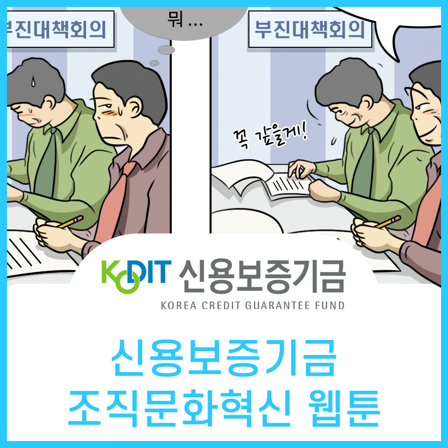 신용보증기금 조직문화 혁신 웹툰은 2017년 04월부터 2018년 12월까지 총 19편(총 69페이지)이 연재되었으며 본 블로그에는 일부만 수록되었습니다.