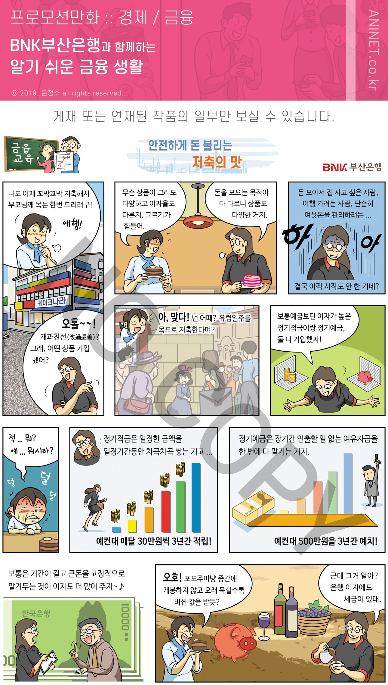 부산은행, 알기 쉬운 금융생활 홍보만화는 금융 전반에 대한 일반 소비자의 이해를 돕기 위해 제작된 단행본 홍보만화로서 부산은행 각 영업점을 방문하는 고객들께 무료 배부되며 청소년들을 위한 금융 교육 등에도 활용되고 있습니다.