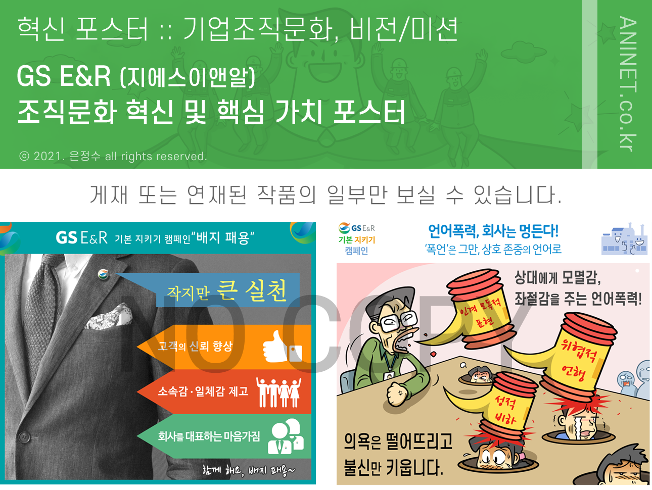 Share Value, Share Energy - 고품질 청정 에너지 공급을 통해 고객과 사회에 최고의 가치를 제공하는 GS E&R의 조직문화혁신 홍보포스터는 2016년 4월부터 2020년 12월까지 약 5년여에 걸쳐 30편의 이포스터로 제작, 그룹웨어 인트라넷 로그인 화면을 통해 연재되었습니다.