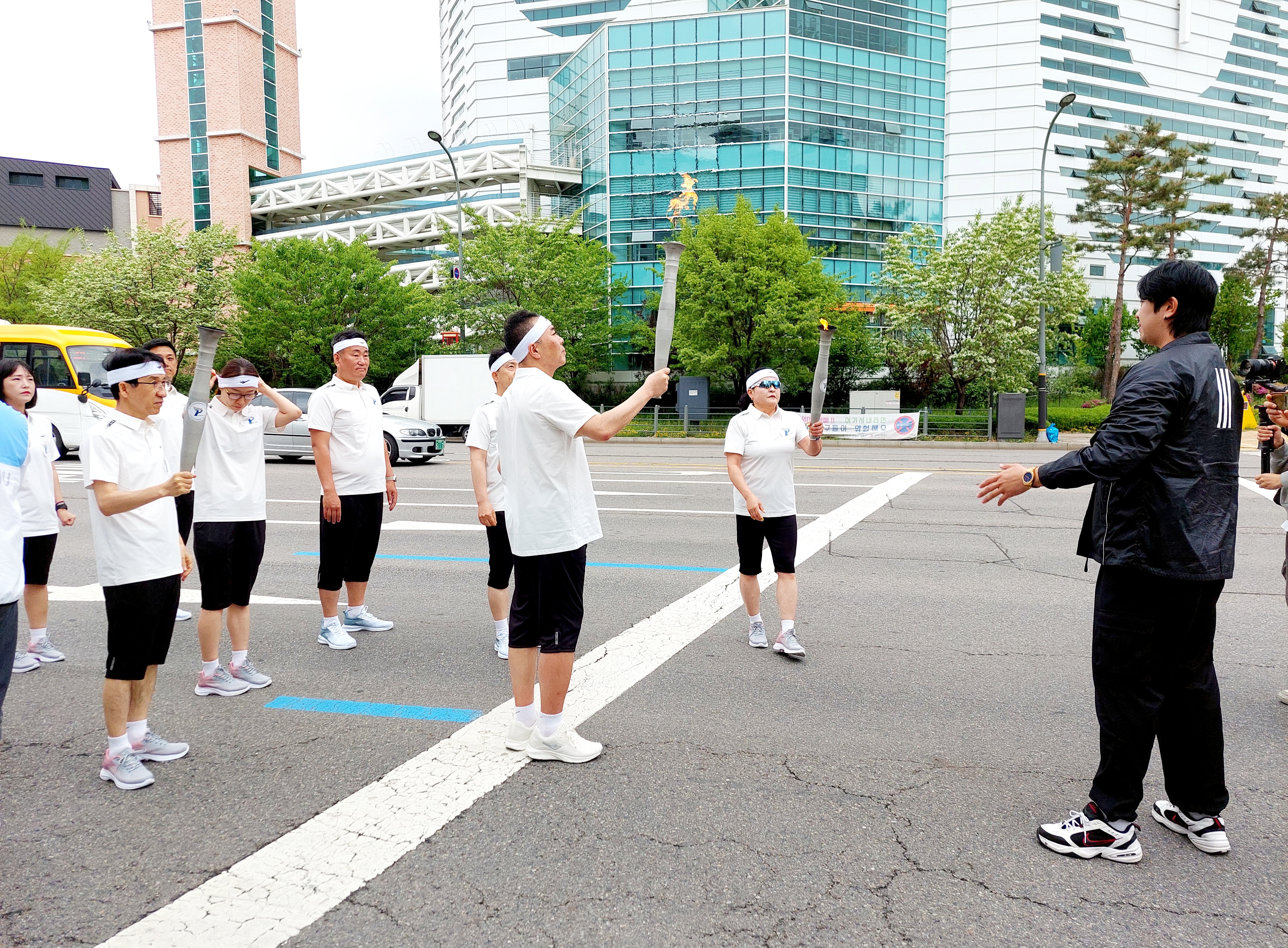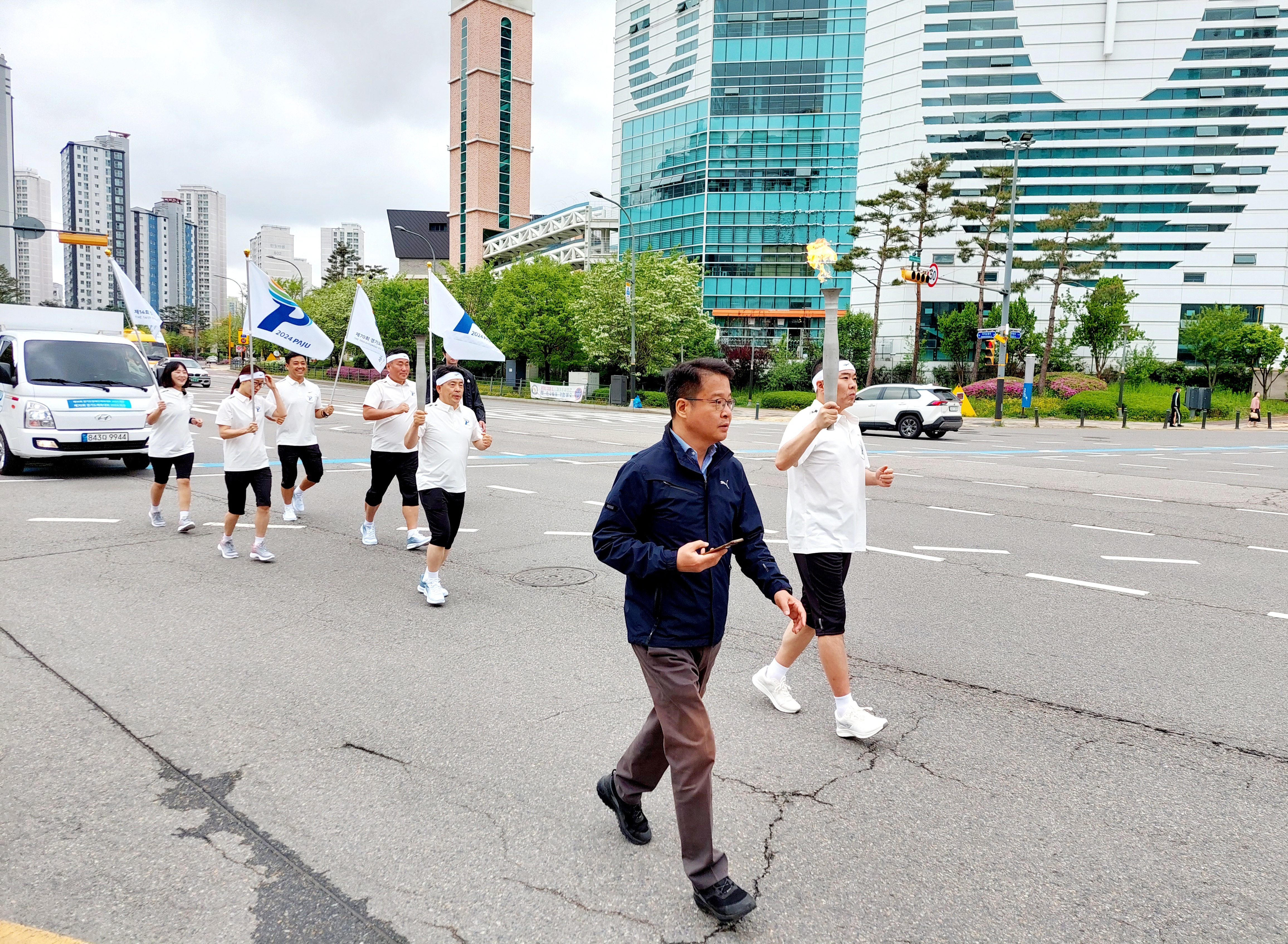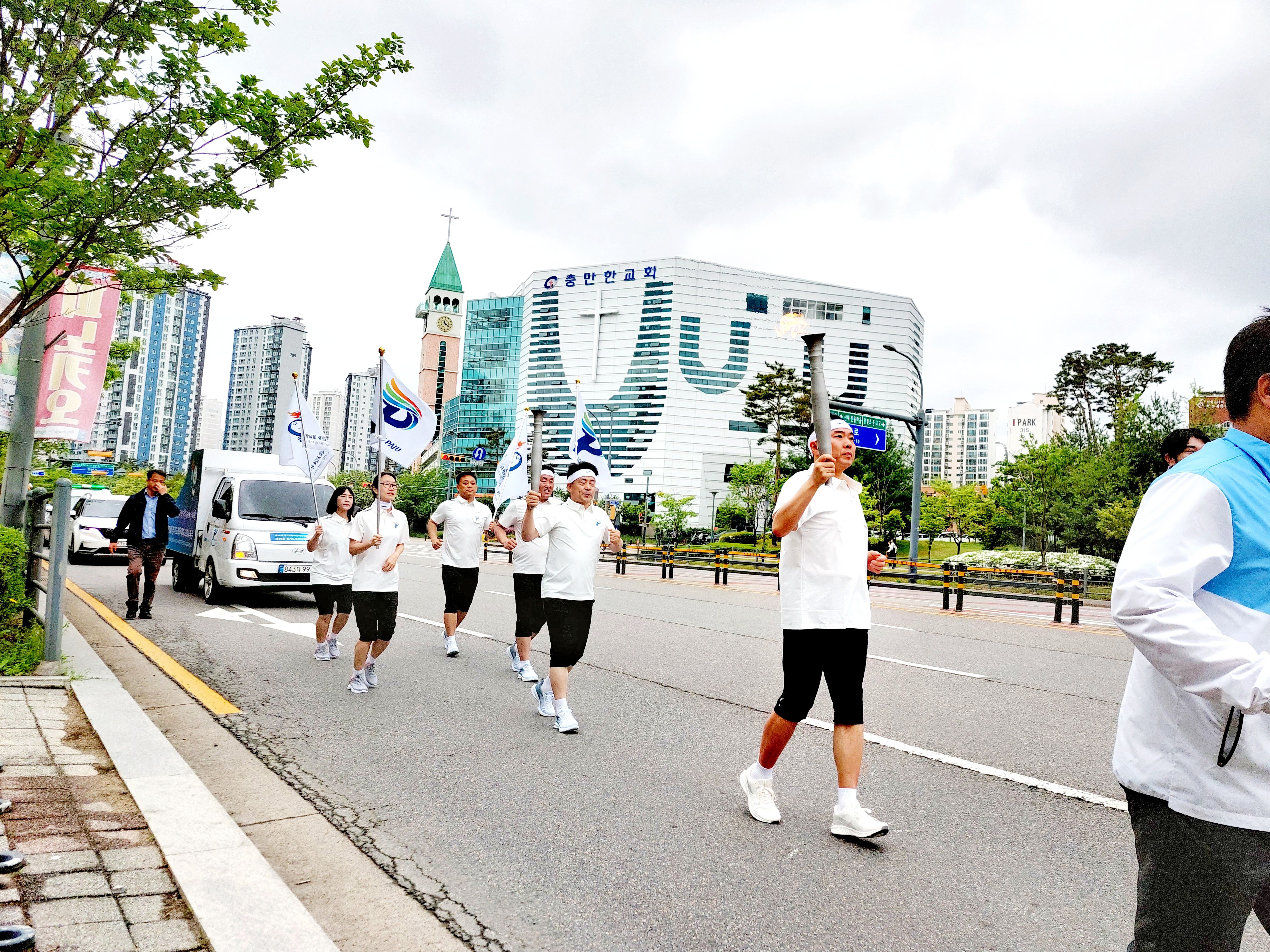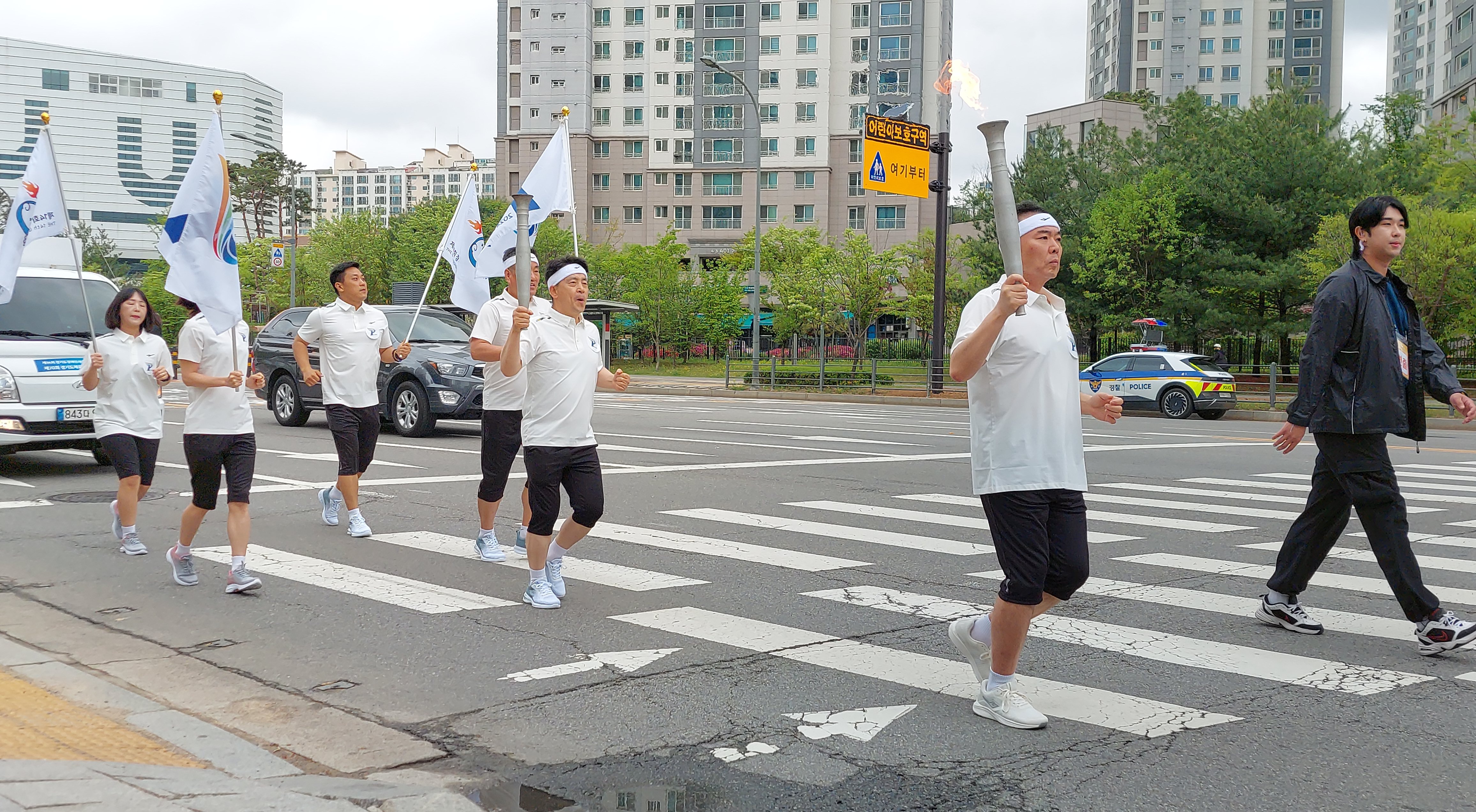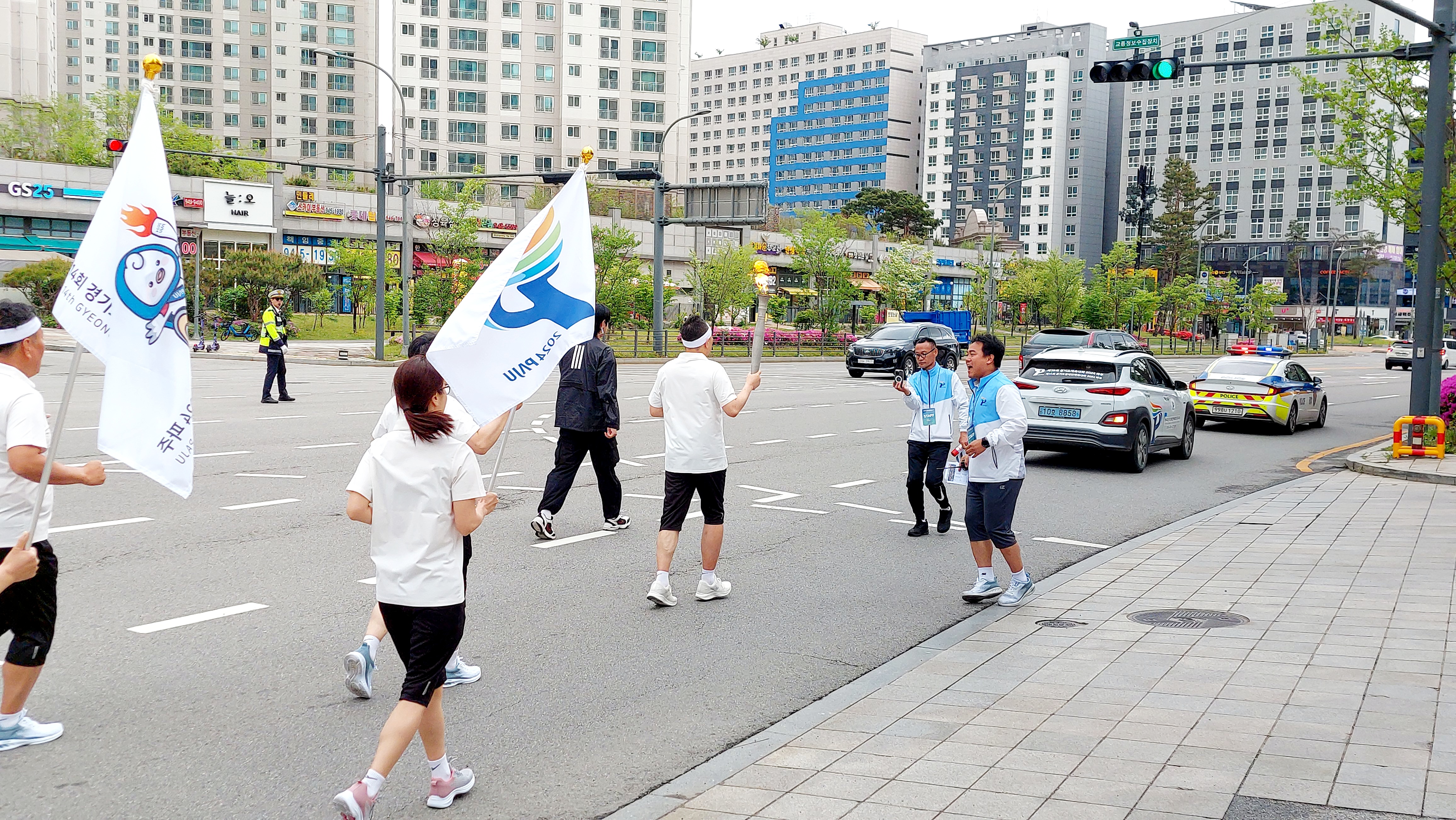 성화 봉송 주자로 나선 2024년 4월 24일 오전은, 때마침 새벽까지 내린 비로 맑게 갠 하늘과 신선한 공기가 거리를 가득 채움으로써 체육대회 개최를 기쁘게 맞이하기엔 더할 나위 없이 좋은 날씨였네요~