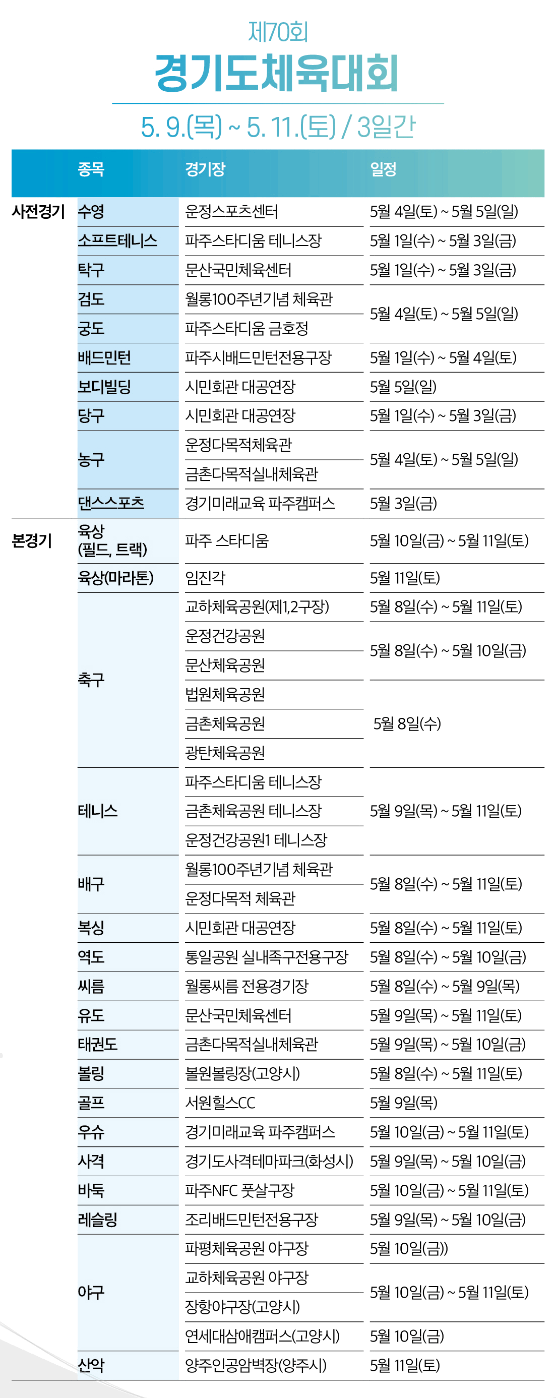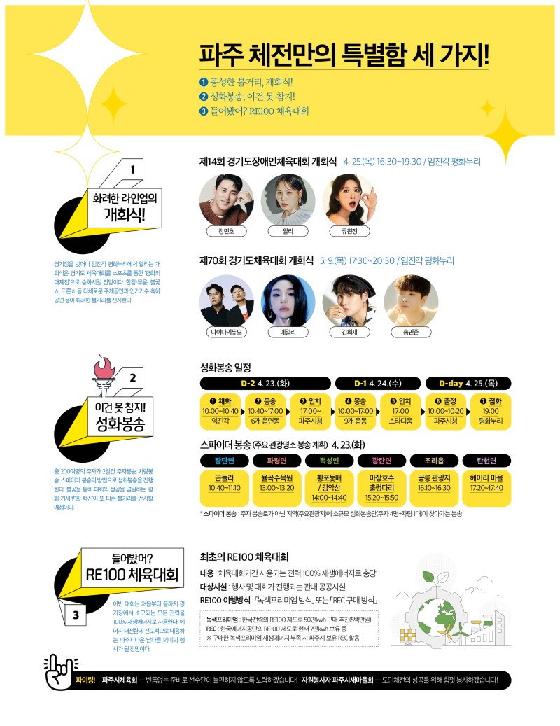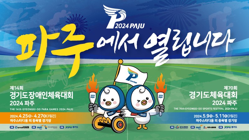 2024년 4월 25일부터 27일까지 제14회 경기도 장애인 체육대회 및 2024년 5월 9일부터 11일까지 제70회 경기도 체육대회가 한반도 평화 수도, 파주에서 열립니다!