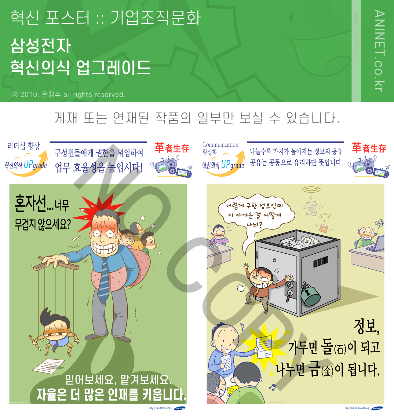 삼성전자 혁신의식 업그레이드 포스터는 약 10개월동안 총 34편을 연재하였습니다.