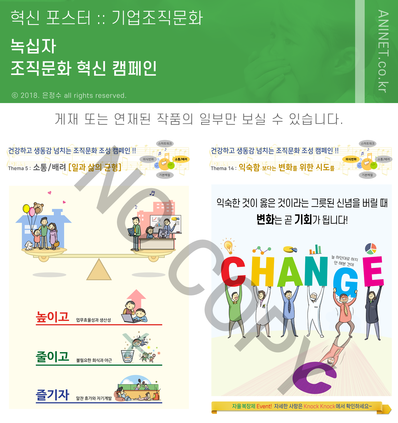 본 블로그에는 총 19편의 녹십자 조직문화 혁신 캠페인 포스터 중에서 일부만 수록되었습니다.